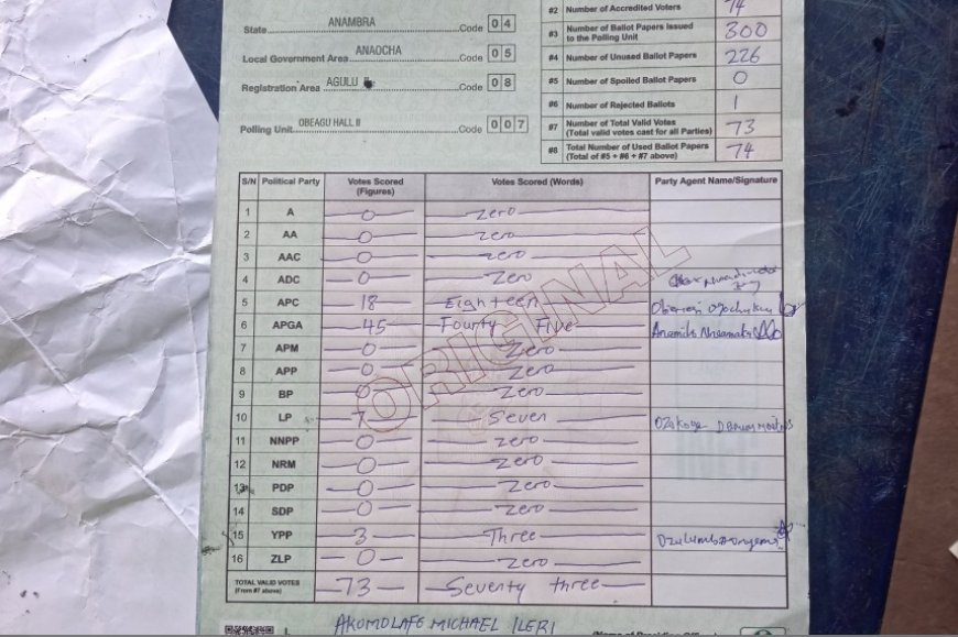 Early results indicated the All Progressives Grand Alliance (APGA) and the All Progressives Congress APC were leading ahead other political parties.