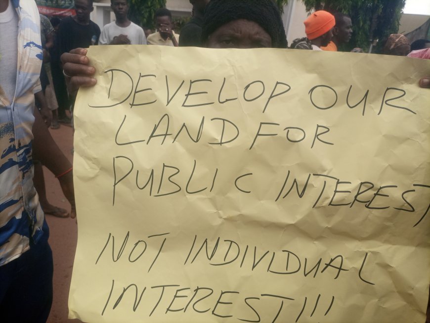 Some of the placard were written inscriptions such as: "Develop our land for public interest not private interest," "Bring more development, not selling of our land," "This land belongs to our people," and many more.